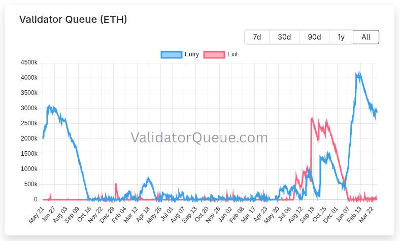 Over the past year, Ethereum’s exit queue has swung from effectively zero days during quiet periods to nearly 50 days during periods of elevated exits. Even today, the network sits in a materially delayed regime with exit queue of roughly 1.15M ETH, a wait time of ~20 days, and a sweep delay of ~8–9 days, implying ~30 days from exit initiation to final liquidity.
