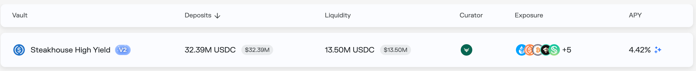 The USDC High Yield vault is currently supported by incentives and is earning around 4.4% APY.