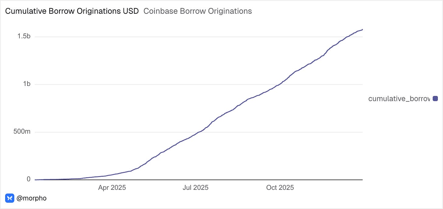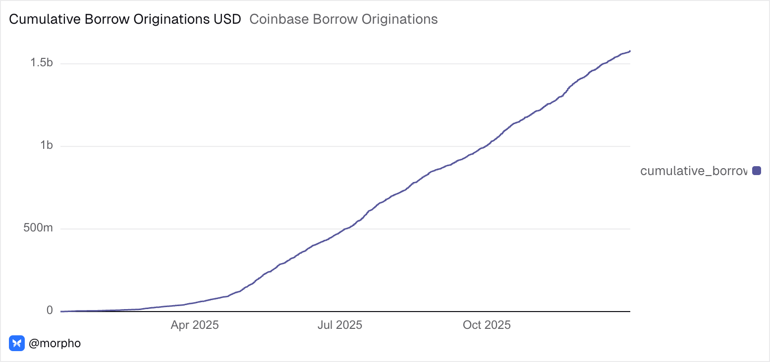 Coinbase, with their borrow product, also allows U.S. users to borrow against their BTC and ETH, and has surpassed $1.5 billion in cumulative borrow originations, highlighting increasing demand for crypto-backed credit within regulated U.S. platforms/regulated intermediaries.