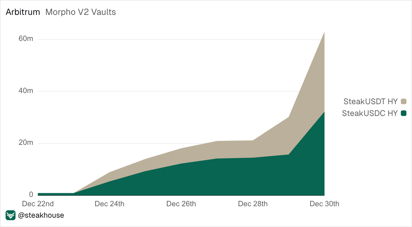 Bitget’s Onchain Earn on Arbitrum deployed USDC and USDT into embedded Morpho Vaults, with Steakhouse acting as the exclusive Curator.