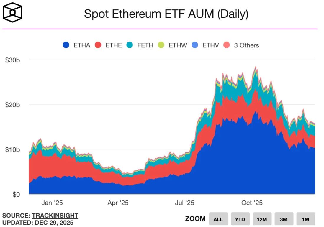 Furthermore, ETFs have lowered barriers to regulated institutional access. Rising AUM in spot ETH ETFs reflects growing exposure via regulated, custodied vehicles, which may make it operationally easier for institutions to hold ETH exposure within existing custody and risk processes.