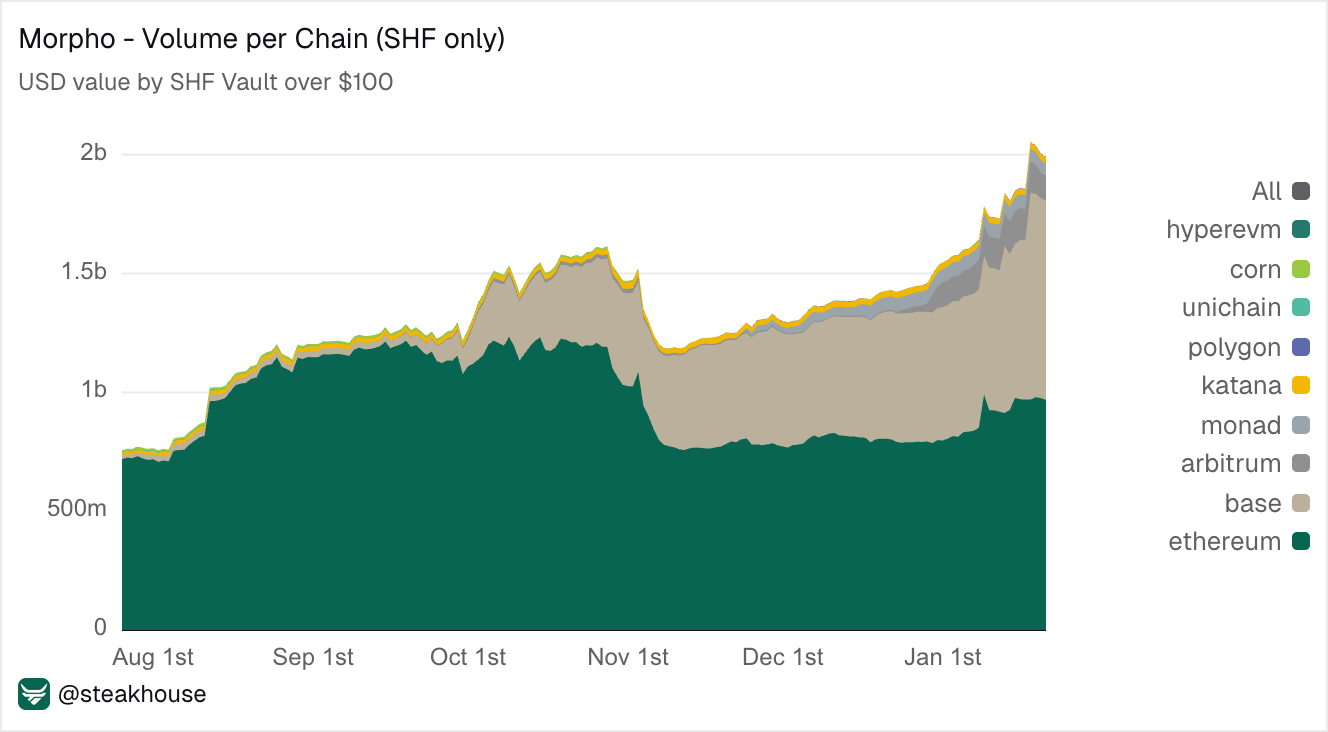 As deposits on Base increased and our vaults grew, Steakhouse crossed $2bn in total assets curated on Morpho, becoming the first ever curator to reach this milestone!