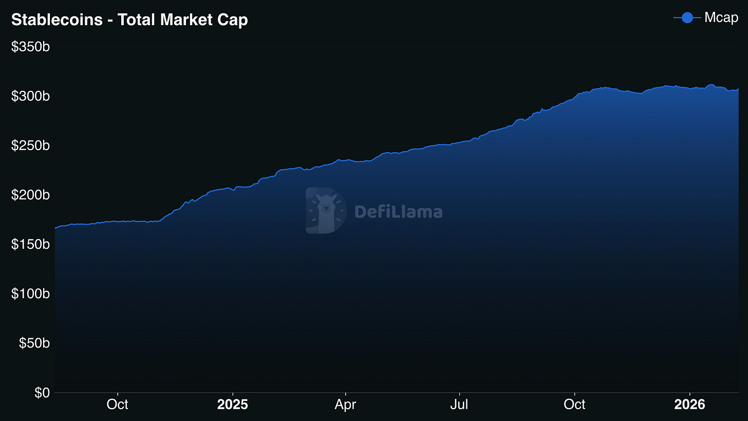While some could argue that capital is leaving DeFi, total stablecoin market capitalisation fell by just ~0.2% MoM and remains up year-to-date in 2026, suggesting capital has largely remained within the crypto ecosystem!