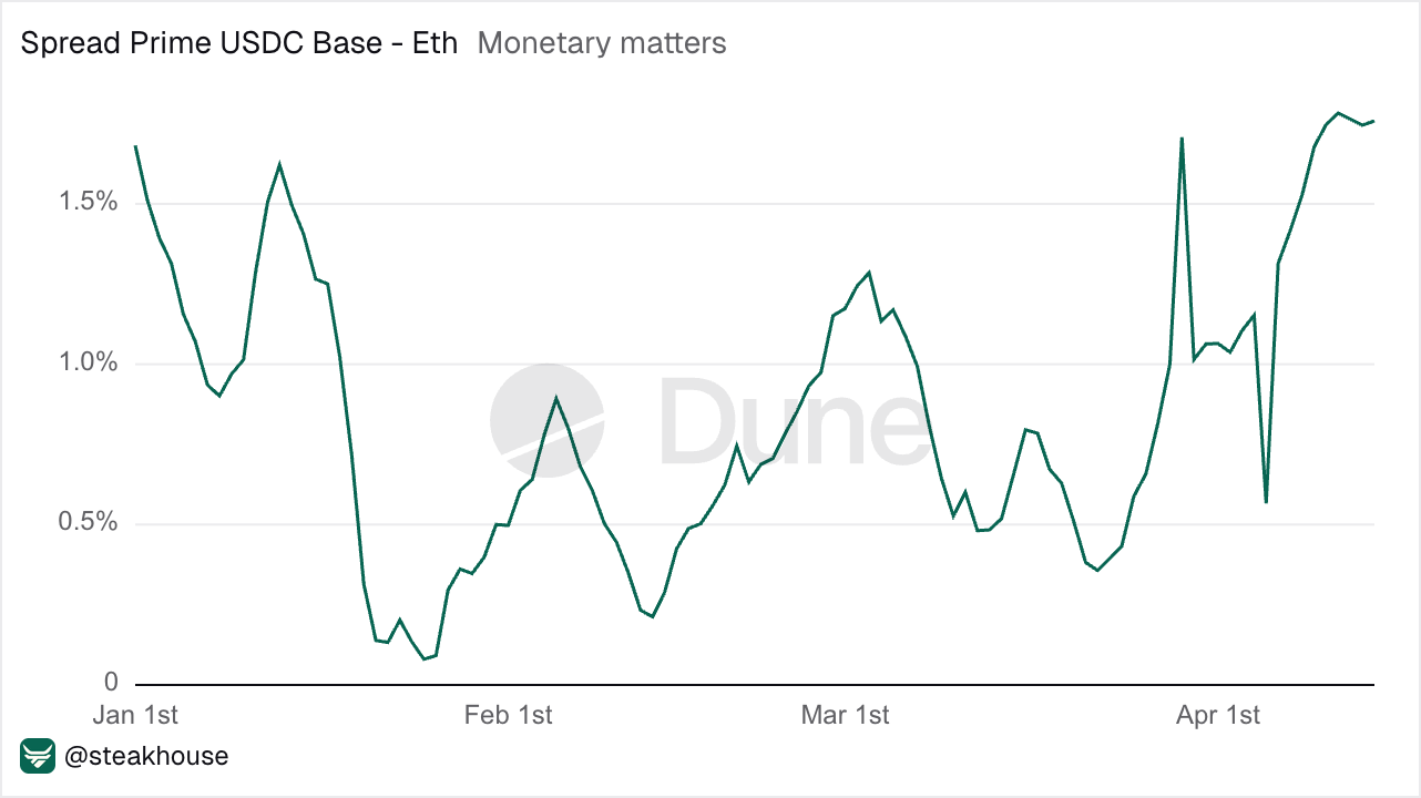 Prime USDC Spread Between Base and Ethereum