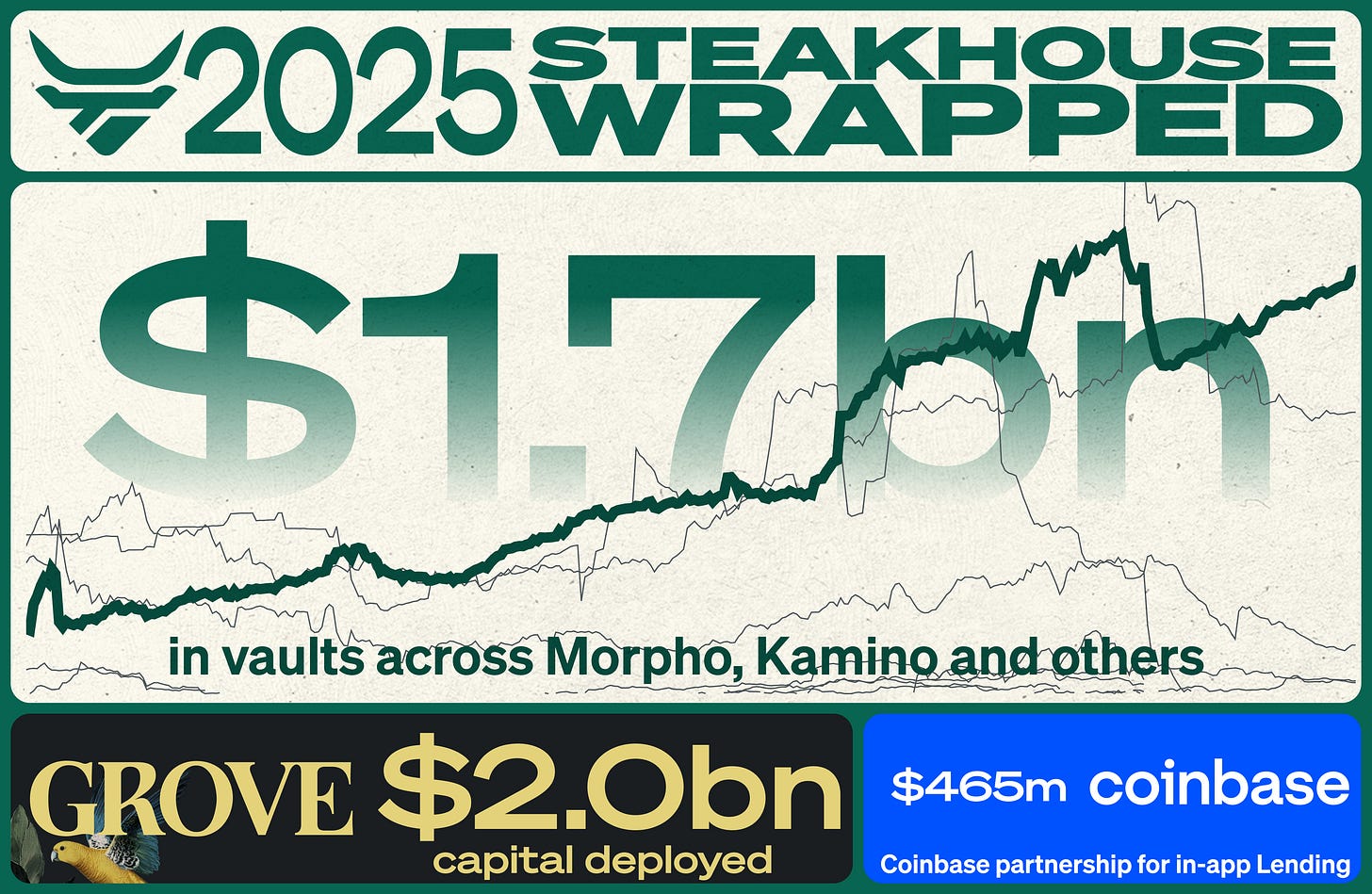 🏆 Steakhouse powers Coinbase’s onchain USDC lending: $400m+ in deposits and 50k+ users